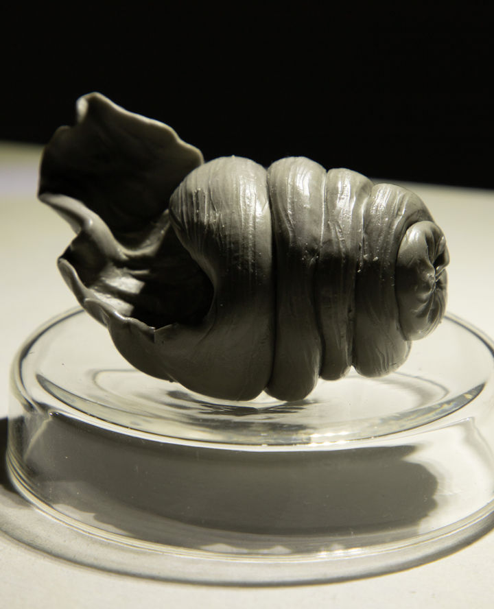 infection invader is an immersive and participatory exhibition, which explores the close connection between humans and viruses. The artists created an interactive installation combining online and on-site devices to help visualise the infectious relationship between people. Audiences are encouraged to play the ‘Infectious Disease Training Course’ game from the exhibition’s online platform and observe how the sculptures in the gallery reflect the audiences’ performance in the game. Part of the exhibition showcase notes, photographs and videos documenting the scientific research and production stages of the artwork.
